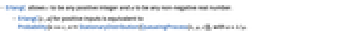 - ErlangC[c,a] for positive inputs is equivalent to Probability[n>=c,nStationaryDistribution[QueueingProcess[λ,μ,c]]], with a=λ/μ.