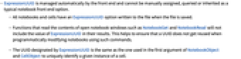 - Functions that read the contents of open notebook windows such as NotebookGet and NotebookRead will not include the value of ExpressionUUID in their results. This helps to ensure that a UUID does not get reused when programmatically modifying notebooks using such commands.