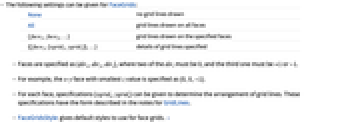 Wolfram Language. 1991. "FaceGrids." Wolfram Language & System Documentation Center. Wolfram Research. Last Modified 2007. https://reference.wolfram.com/language/ref/FaceGrids.html.