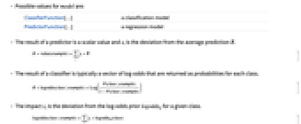 ClassifierFunction[…] a classification model PredictorFunction[…] a regression model - The result of a predictor is a scalar value and si is the deviation from the average prediction