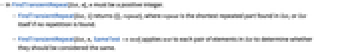 - FindTransientRepeat[list,1] returns {{},repeat}, where repeat is the shortest repeated part found in list, or list itself if no repetition is found.