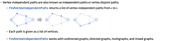 - FindVertexIndependentPaths works with undirected graphs, directed graphs, multigraphs, and mixed graphs.