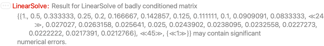 The solution found by LinearSolve has very large entries: