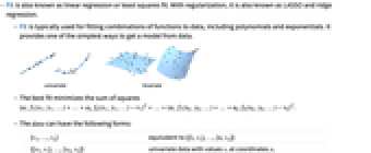 - Fit is also known as linear regression or least squares fit. With regularization, it is also known as LASSO and ridge regression.