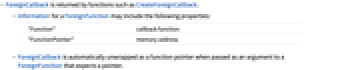 - ForeignCallback is returned by functions such as CreateForeignCallback.
