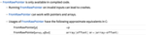 - Running FromRawPointer on invalid inputs can lead to crashes.