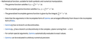 - Gamma[a,z] has a branch cut discontinuity in the complex z plane running from