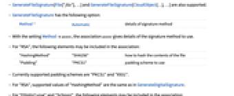 - For "RSA", supported values of "HashingMethod" are the same as in GenerateDigitalSignature.