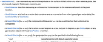 - GeoGridVector describes data using an orthonormal frame tangent to the reference ellipsoid at the given location.