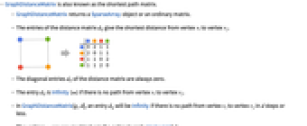 - GraphDistanceMatrix is also known as the shortest path matrix.