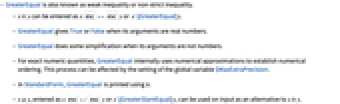 - GreaterEqual does some simplification when its arguments are not numbers.