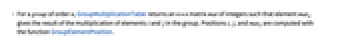 - For a group of order n, GroupMultiplicationTable returns an n×n matrix mat of integers such that element matij gives the result of the multiplication of elements i and j in the group. Positions i, j, and matij are computed with the function GroupElementPosition.