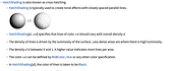 - HatchShading[d,col] specifies that lines of color col should vary with overall density d.