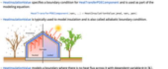 - HeatInsulationValue specifies a boundary condition for HeatTransferPDEComponent and is used as part of the modeling equation: