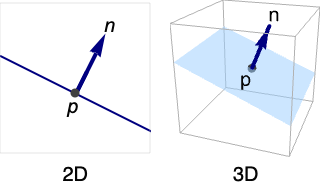 - Hyperplane[n] is equivalent to Hyperplane[n,0], a hyperplane through the origin.