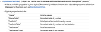 - A HypothesisTestData[…] object htd, can be used to retrieve additional data and reports through htd["property"].