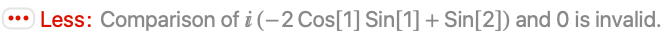 Disguised purely real quantities that contain I cannot be used in numerical comparisons: