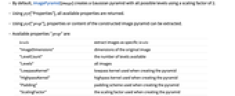 - Using pyr["prop"], properties or content of the constructed image pyramid can be extracted.