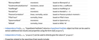 - IndependenceTest[v1,v2,"property"] can be used to directly give the value of "property".