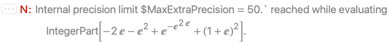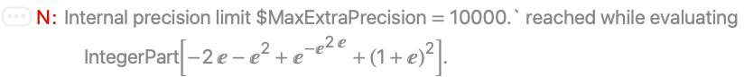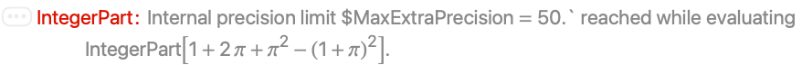 - For exact numeric quantities, IntegerPart internally uses numerical approximations to establish its result. This process can be affected by the setting of the global variable $MaxExtraPrecision.