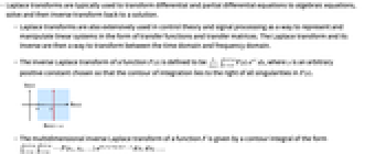 - Laplace transforms are typically used to transform differential and partial differential equations to algebraic equations, solve and then inverse transform back to a solution.