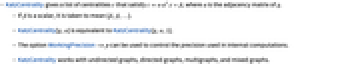 - KatzCentrality[g,α] is equivalent to KatzCentrality[g,α,1].