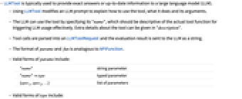 - Using LLMTool modifies an LLM prompt to explain how to use the tool, what it does and its arguments.