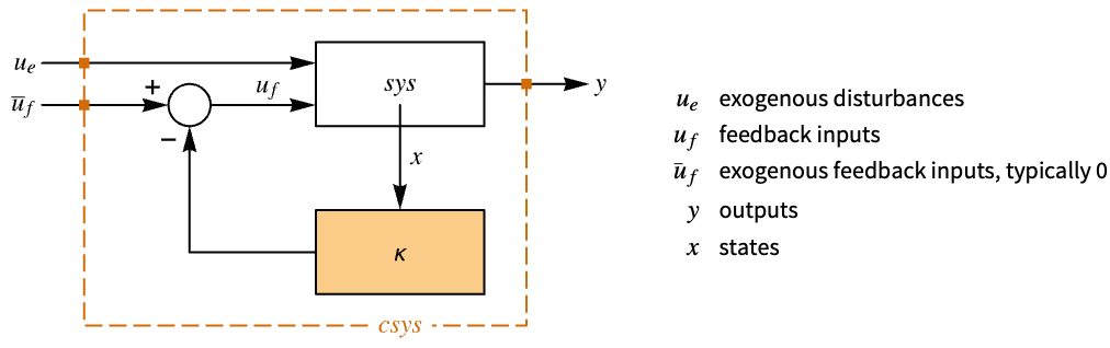 "InputModel" sys any one of the models "FeedbackInputs" All the feedback inputs uf "TrackedOutputs" None the tracked outpus yt "TrackedSignal" Automatic the dynamics of yref - The feedback inputs can have the following forms: