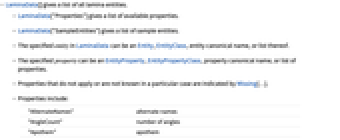 - LaminaData["SampleEntities"] gives a list of sample entities.