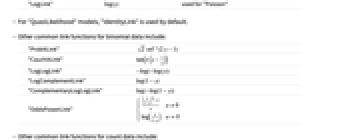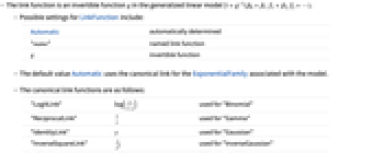 Automatic automatically determined "name" named link function g invertible function - The default value Automatic uses the canonical link for the ExponentialFamily associated with the model.