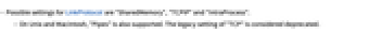 - Possible settings for LinkProtocol are "SharedMemory", "TCPIP" and "IntraProcess".