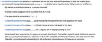 - LocationEquivalenceTest performs a hypothesis test on the datai with null hypothesis