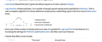 - LogLinearPlot initially evaluates f at a number of equally spaced sample points specified by PlotPoints. Then it uses an adaptive algorithm to choose additional sample points, subdividing a given interval at most MaxRecursion times.