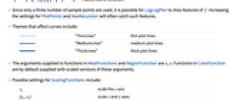 "ThickLines" thick plot lines - The arguments supplied to functions in MeshFunctions and RegionFunction are x, y. Functions in ColorFunction are by default supplied with scaled versions of these arguments.