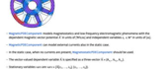 [t,x1,…,xn],t,{x1,…,xn}}. - MagneticPDEComponent provides a stationary magnetic model: