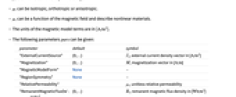 can be a function of the magnetic field and describe nonlinear materials.- The units of the magnetic model terms are in [