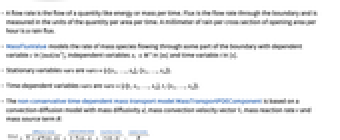 - MassFluxValue specifies a boundary condition for MassTransportPDEComponent and is used as part of the modeling equation: