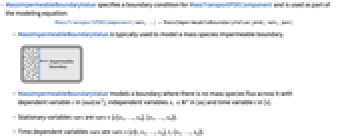- MassImpermeableBoundaryValue specifies a boundary condition for MassTransportPDEComponent and is used as part of the modeling equation: