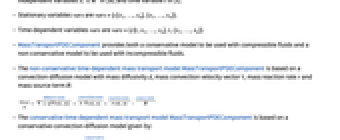 - MassTransportPDEComponent provides both a conservative model to be used with compressible fluids and a non-conservative model to be used with incompressible fluids.