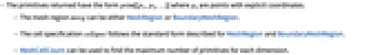 Wolfram Language. 2014. "MeshPrimitives." Wolfram Language & System Documentation Center. Wolfram Research. https://reference.wolfram.com/language/ref/MeshPrimitives.html.