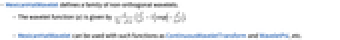 - MexicanHatWavelet defines a family of non-orthogonal wavelets.