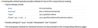 None do no processing Automatic pick a method automatically "name" use a specified method {"name",opt1->val1,…} use a specified method with particular options - Possible settings for "name" include "Interpolation" and "Constant".