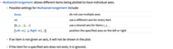 None do not use multiple axes All use a different axis for every item {{i,j,…},…} use a shared axis for items i, j, … {Left{…},Right{…}} position the specified axes on the left or right - If an item is not given an axis, it will not be shown in the plot.