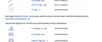Circle[p,…] counterclockwise - Area regions such as Polygon can be used, and the contours are then taken to be the boundary contours RegionBoundary[Polygon[…]].
