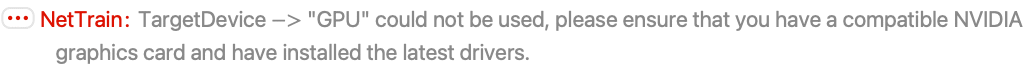 If a compatible GPU is not available, a message is issued and $Failed is returned: