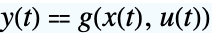 . - NonlinearStateSpaceModel[{f,g},x,u,y,t] explicitly specifies the output variables y and independent variable t.