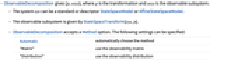 - ObservableDecomposition gives {p,osys}, where p is the transformation and osys is the observable subsystem.