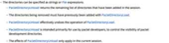 - PacletDirectoryUnload is intended primarily for use by paclet developers, to control the visibility of paclet development directories.