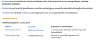 - Parallelize has attribute HoldFirst, so that expressions are not evaluated before parallelization.