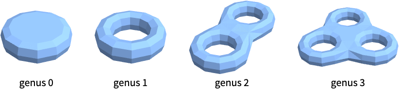 Wolfram Language. (2019). PolyhedronGenus. Wolfram Language & System Documentation Center. Retrieved from https://reference.wolfram.com/language/ref/PolyhedronGenus.html